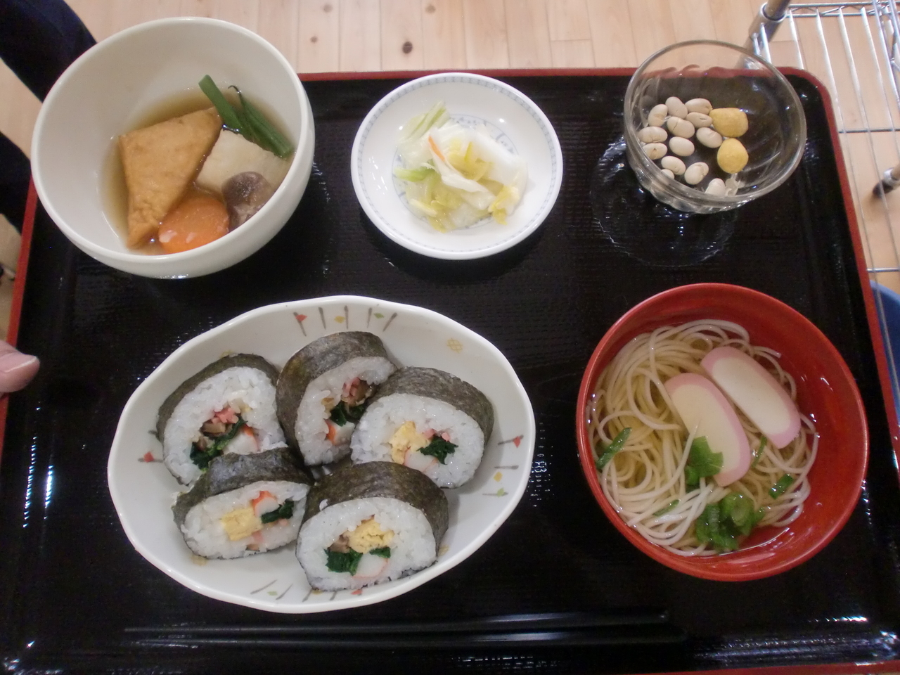 わかすぎデイでも昼食時に利用者様に「南南東」へできるだけ向いてもらい、恵方巻きをいただきました。