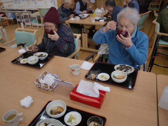 わかすぎデイでも昼食時に利用者様に「南南東」へできるだけ向いてもらい、恵方巻きをいただきました。