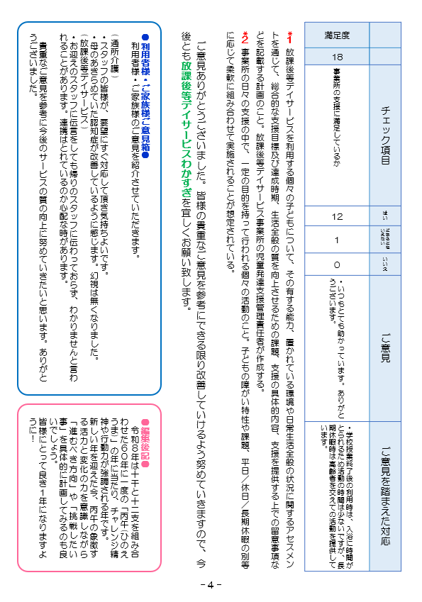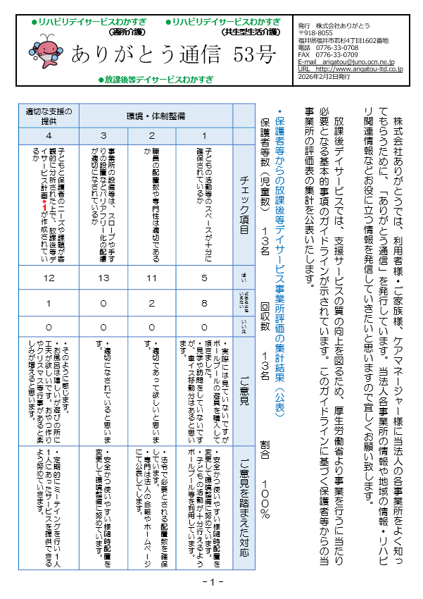 株式会社ありがとうでは、利用者様・ご家族様、ケアマネージャー様に当法人の各事業所をよく知ってもらうために「ありがとう通信」を発行しています。当法人各事業所の情報や地域の情報・リハビリ関連情報などお役に立つ情報を発信していきたいと思いますので宜しくお願い致します。